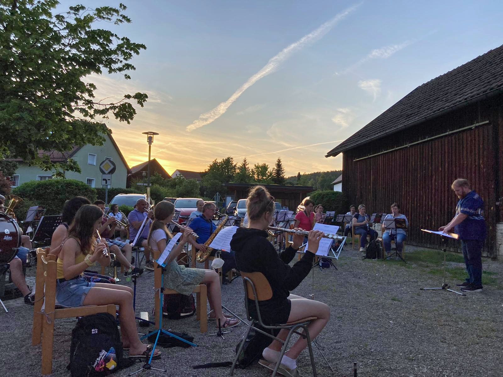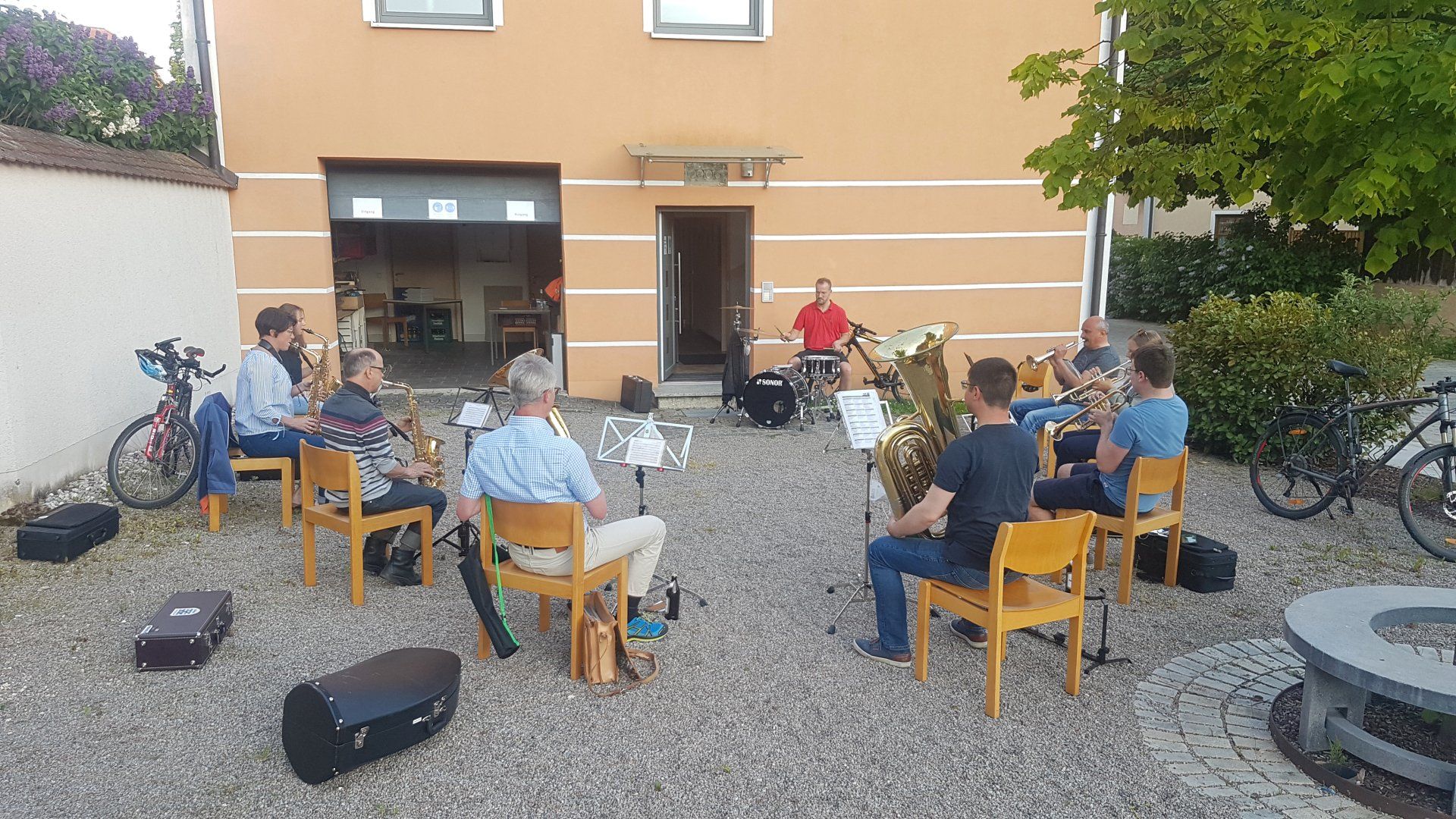 Die unvorhergesehene Pandemie machte auch unserem Verein ordentlich zu Schaffen. Mit einem Mal war nichts mehr selbstverständlich: weder das wöchentliche Proben noch die regelmäßigen Vorstandssitzungen, ganz zu schweigen von Auftritten in der Öffentlichkeit. Diskutiert wurde jetzt nicht mehr über die Liederfolge im Konzert, sondern über die Anschaffung von (mittlerweile extrem teurem) Plexiglas, über Abstand und Hygienekonzepte. Wir gründeten kleine Gruppen mit maximal 15 Leuten, die in sich spielfähig waren, und planten ein entzerrtes Konzert unter strengen Hygieneregeln. Leider machte das Virus letztendlich aber auch diese Hoffnung zunichte. Die Idee der kleinen Gruppen wollen wir trotzdem mal noch nicht ganz aus den Augen verlieren – ob mit, oder bald hoffentlich OHNE Corona!