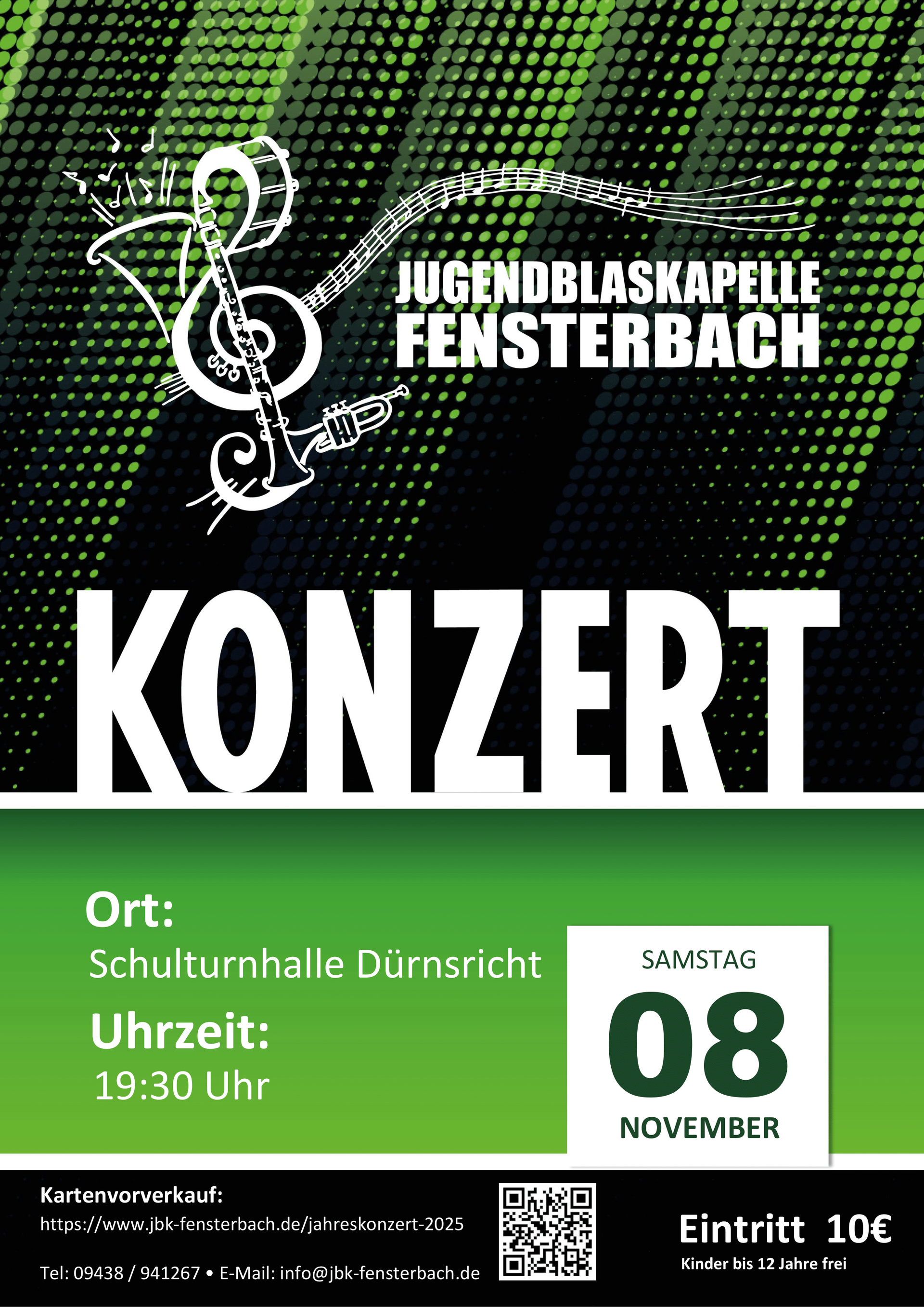 Die Jugenblaskapelle Fensterbach lädt euch zu einem beeindruckenden Konzert ein! Neben der mitreißenden Energie in The Olimpic Spirit über die klangvolle Vielfalt afrikanischer Volkslieder in African Harmony bis hin zu den packenden Rhythmen von The Lord of the Dance erwarten euch dieses Mal auch Special Guests. Gemeinsam mit unserem Nachwuchsorchester entführen wir euch in eine musikalische Welt voller Emotionen und Gänsehaut-Momente.